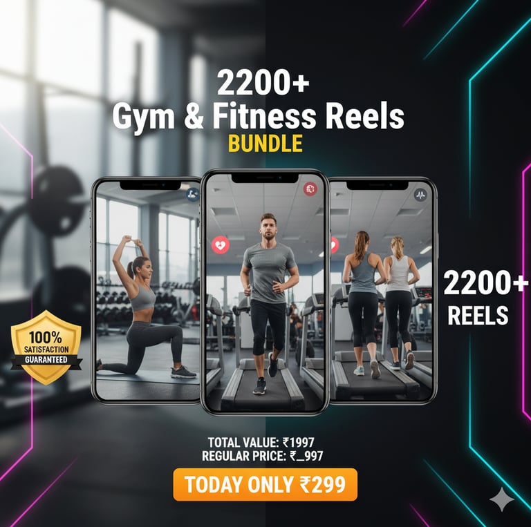A1. Aapko ready-to-use, high-quality fitness reels milengi jo workouts, nutrition tips aur motivation cover karti hain.
